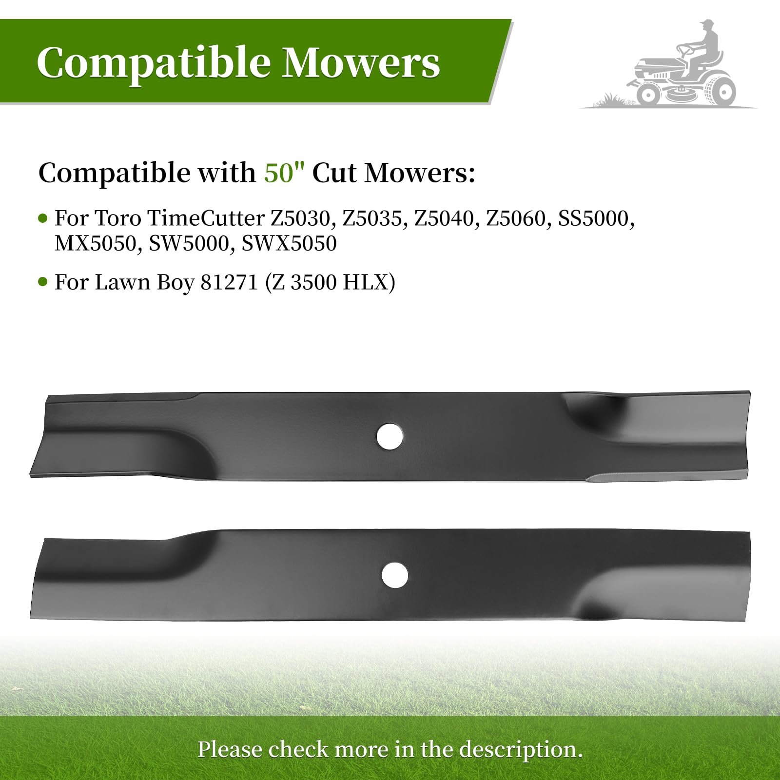 - 110-6837-03 Mower Blades Fit for Toro TimeCutter 50″ Deck SS5000, 115-5059-03 High Lift Blades Compatible with Toro Z5000 SS5060 50″ Zero Turn Mower Riding Tractor, Replace 112-9759-03, 3 Pack