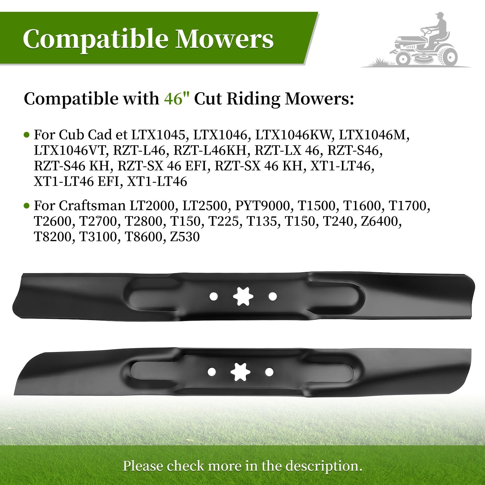 - 46 Inch Mower Blades 942-04244A for Cub-Cadet XT1-LT46 XT2 LTX1045 LTX1046, 942-04290 High Lift Blades Replace for 942-04244, 742-04244, 742-04244A, 742-04290, 2 Pack