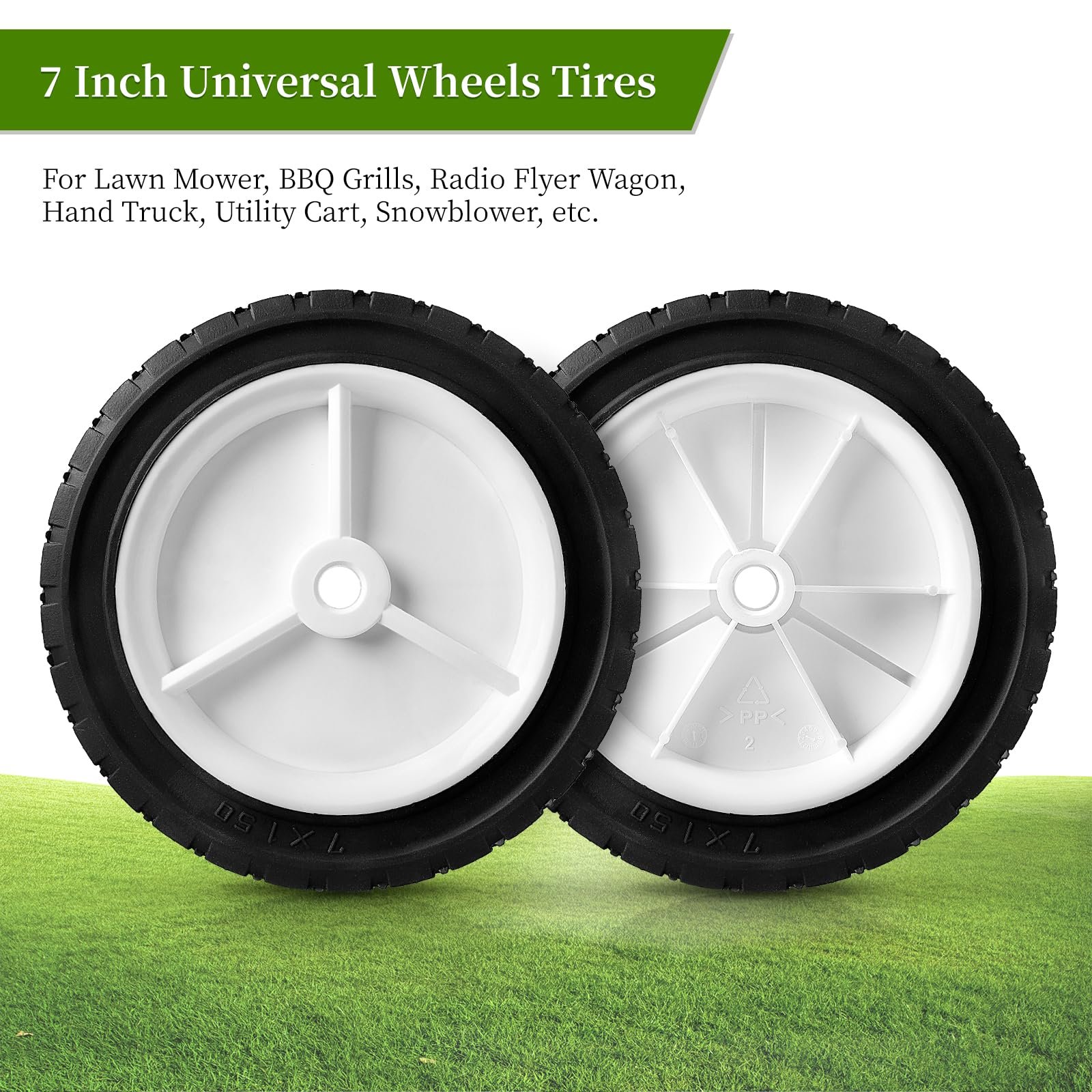 - 72-107 Wheels for Oregon, 7 Inch Universal Tires for Lawn Mower, BBQ Grills, Radio Flyer Wagon Wheels Replacement, Hand Truck, Utility Cart, Snowblower, 2 Pack